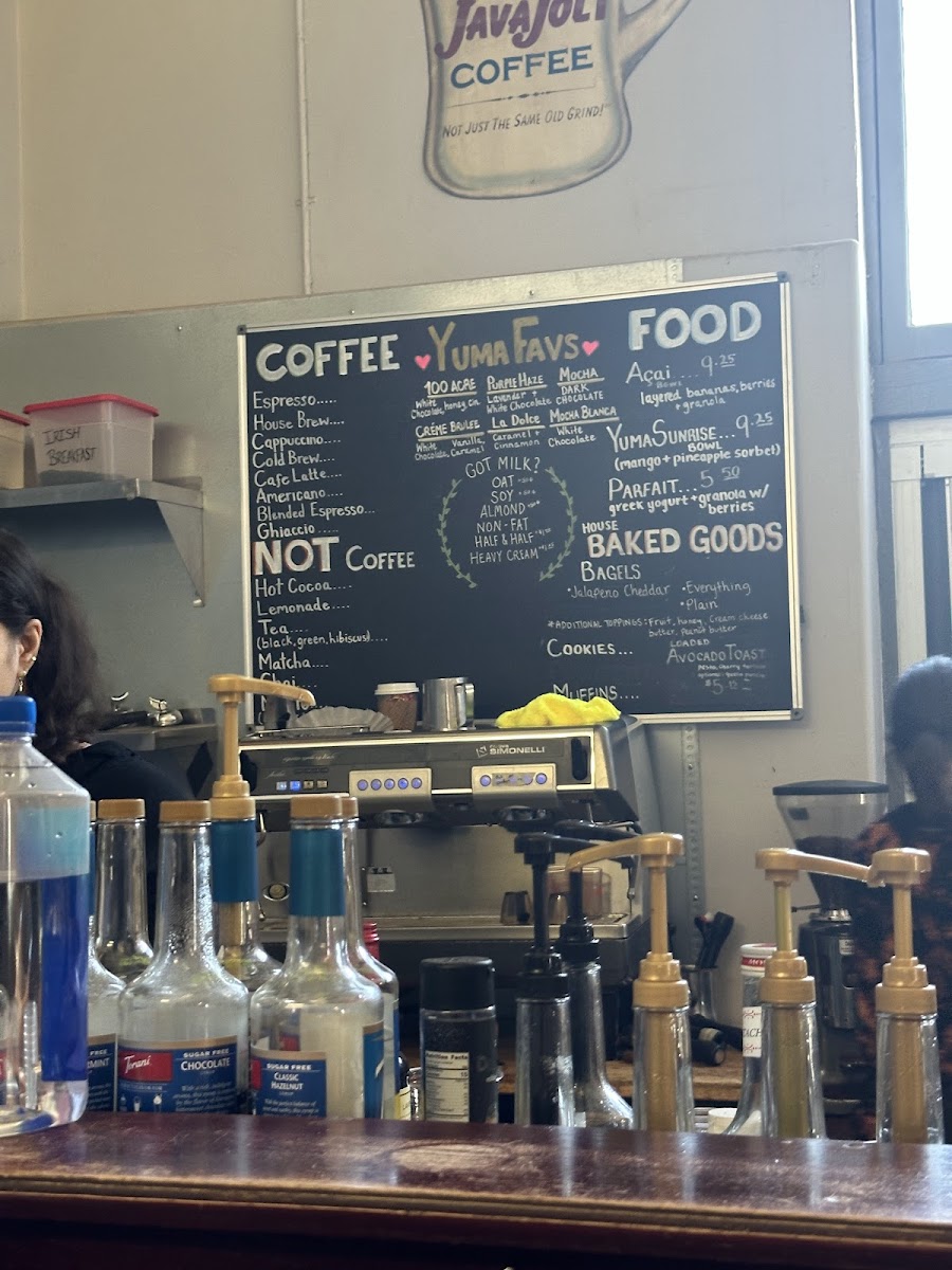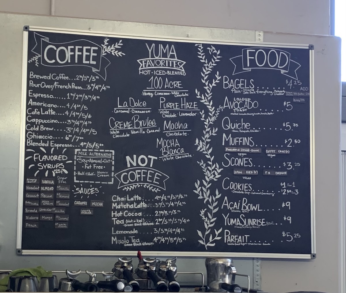 The food menu features approachable, flavorful bites such as loaded avocado toast, fresh bagels, and savory quiches. Lighter choices like granola, açaí bowls, and parfaits also fit seamlessly with the quiet, mellow vibe of the space. Sweet treats like cinnamon rolls, honey lavender scones, and brownies provide a gentle indulgence whether you’re settling in for a moment or grabbing a thoughtful snack on the go.